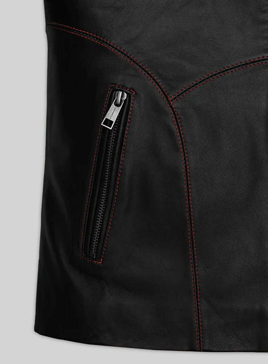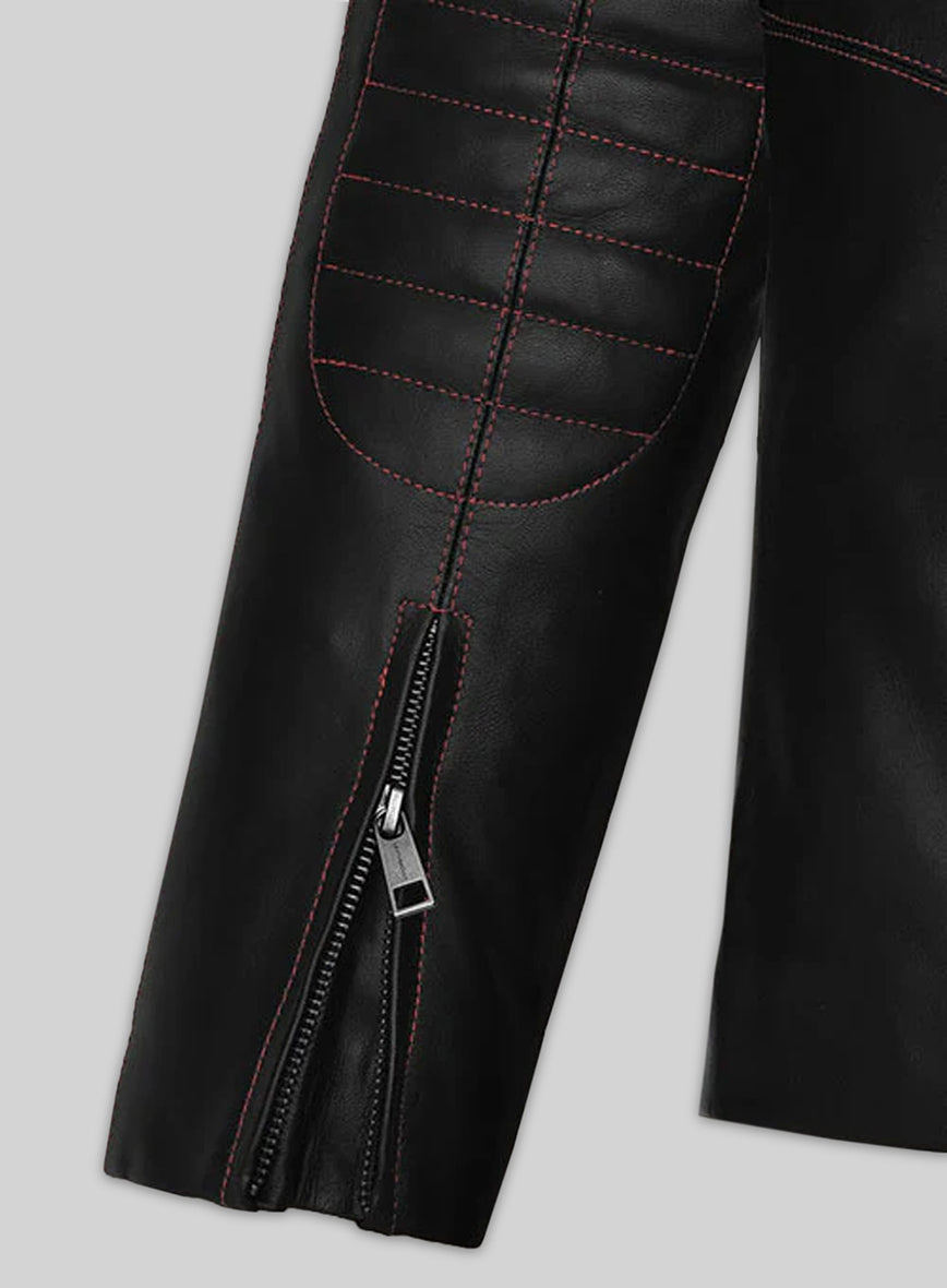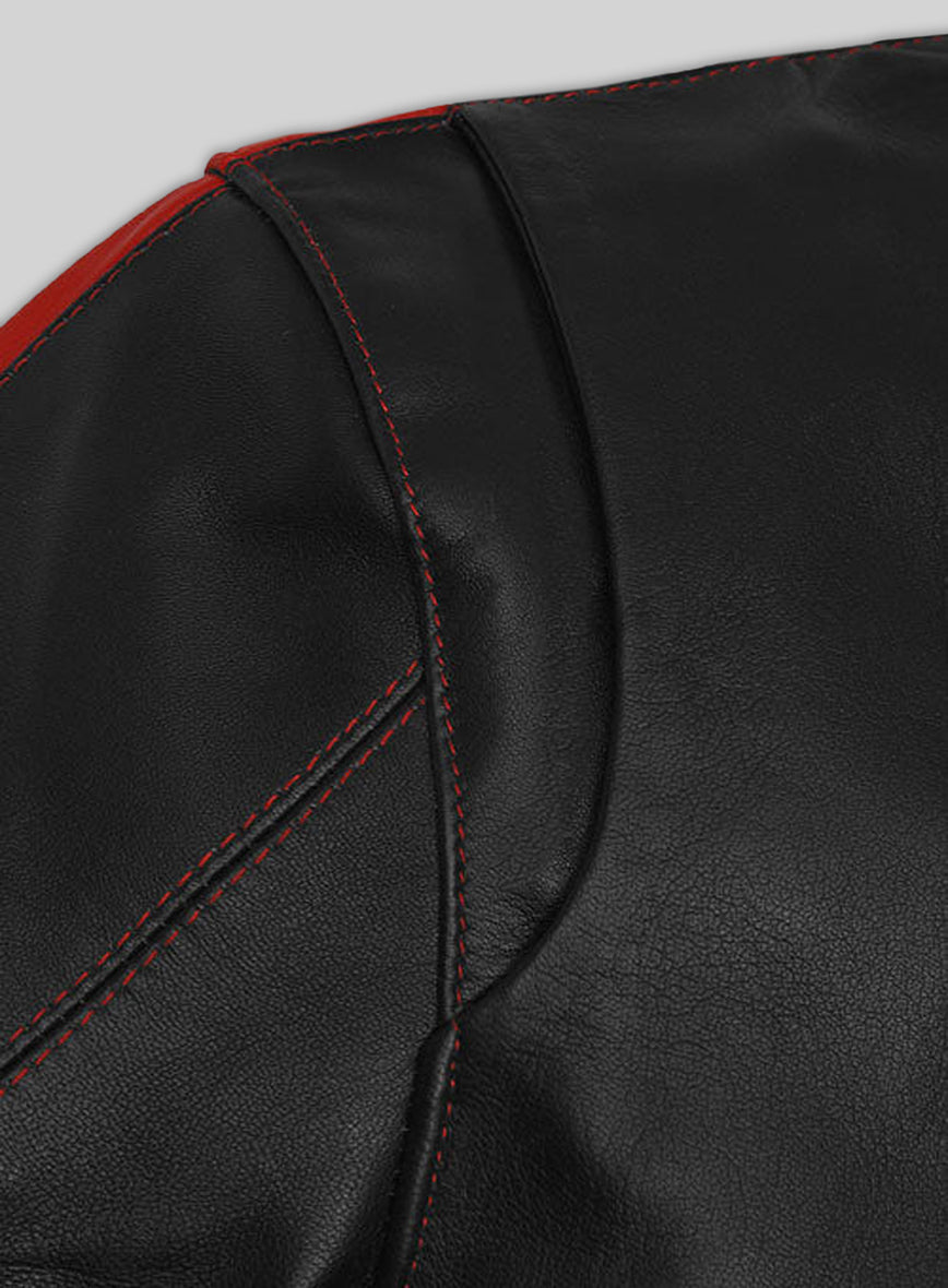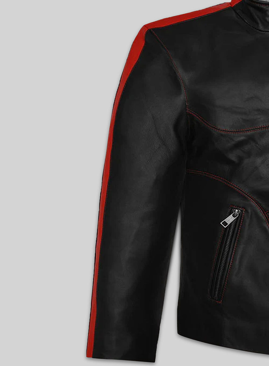 An excellent jacket. This was my sixth order from LeatherCult (believe it or not) and so far I haven?t been disappointed. Quite the opposite. I?ve been repeatedly impressed with the quality and accuracy of the custom measurements. Please note that the red stripes are just a big wider than I had expected based on the photos, and the color was much bolder red (go by the square color-sample and not the images of the actor) however it looks really good, so I?m very satisfied. The color-sample was a very accurate representation of the color. Good jacket!
