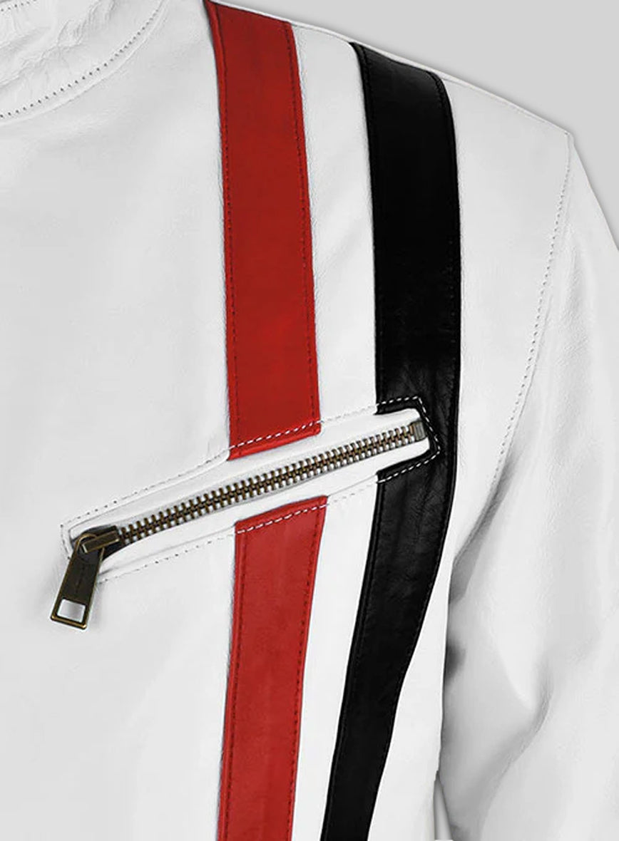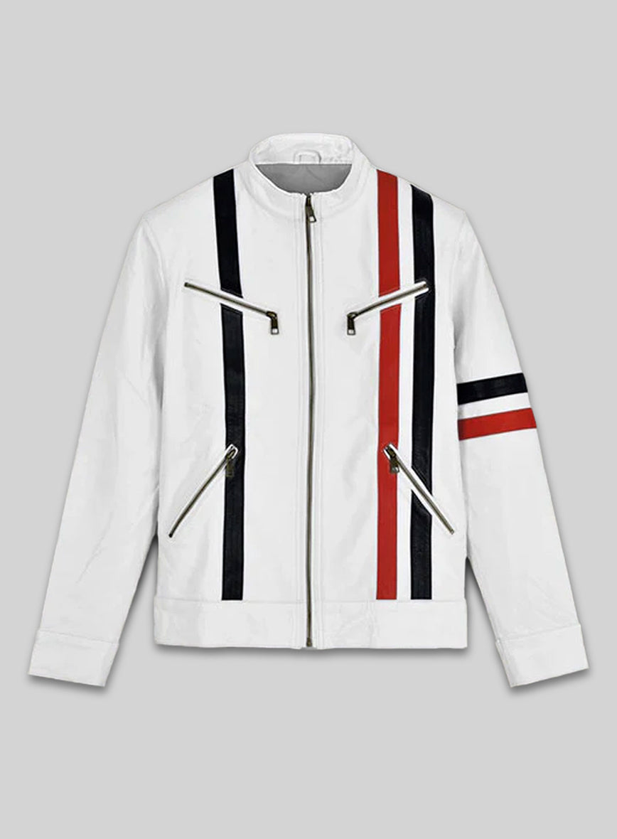 The jacket is a versatile piece for both casual and smart occasions at the same time will offer a classic look with a stylish twist. Made Using Pure Napa Sheep Skin Soft Leather. Look Includes White Leather Color Red Color of Stripe Black Color of 2nd Stripe Antique Brass Zipper Leather Jacket #97 Style You ...