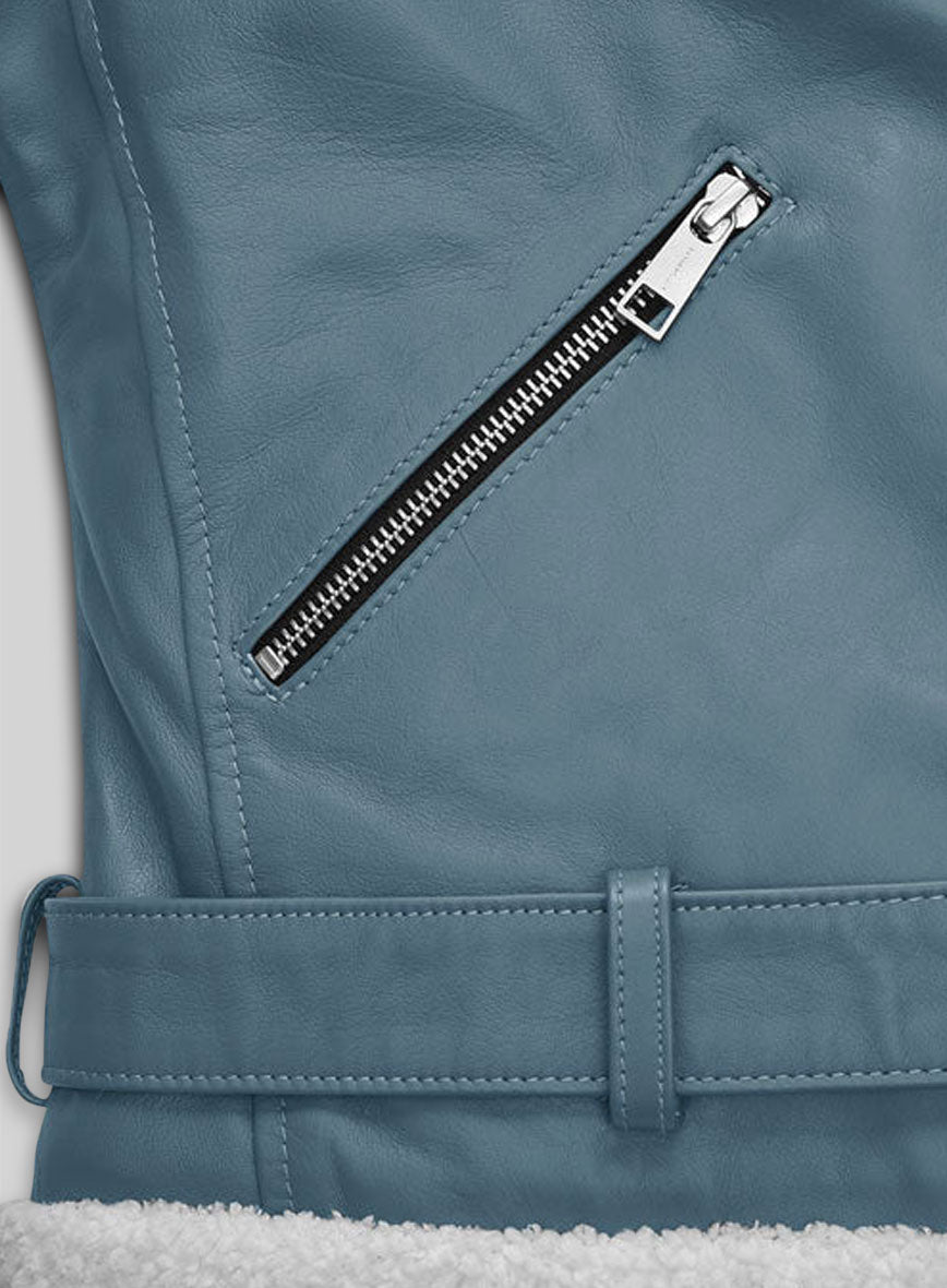 Our replica leather jacket features the Sherpa Faux Fur around the lapel, inner side and sleeves.