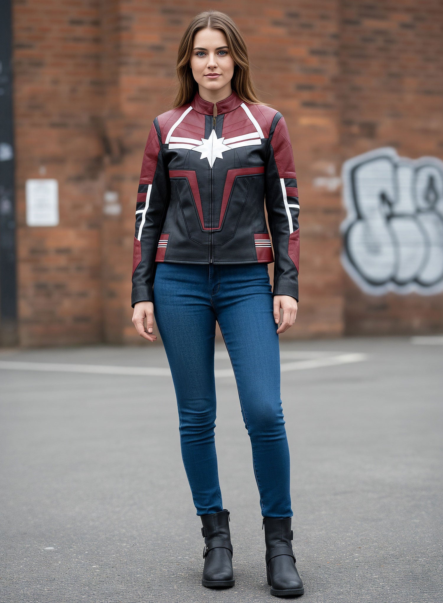 Forget subtle. This is how heroes dress. The Captain Marvel Leather Jacket is an unapologetic tribute to the fiercest Avenger. With its deep navy and crimson panels, signature starburst insignia, and bold white detailing, it captures the energy of Carol Danvers mid-flight. Constructed from genuine leather with a structured fit and clean zip-front closure, it’s ...