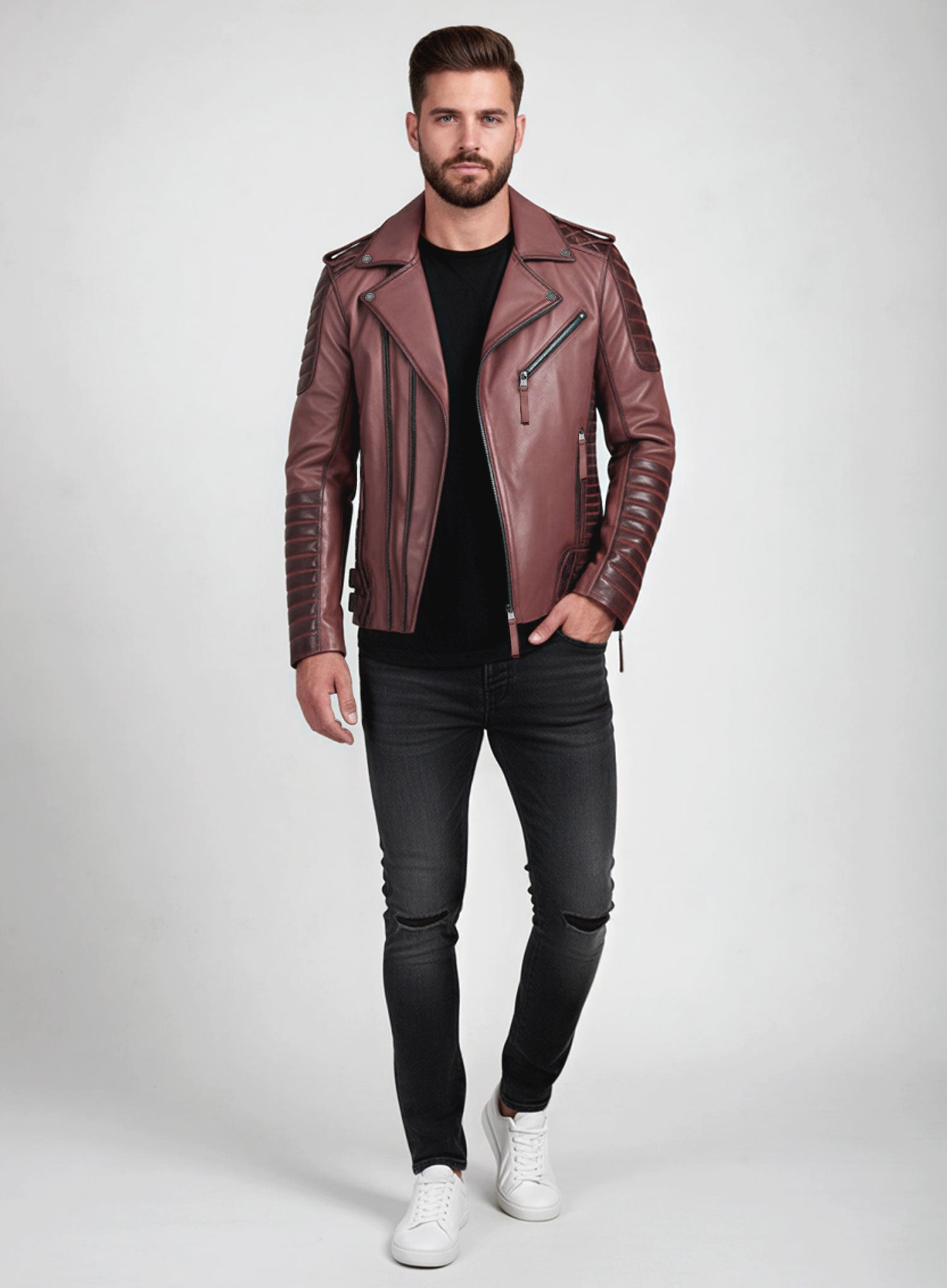 Planning to commit to a new look this season? then why not our Charles Burnt Maroon Leather Jacket that will help you make a statement on its own. Amp up your whole look with the elegantly designed leather jacket which will transform an otherwise boring look.