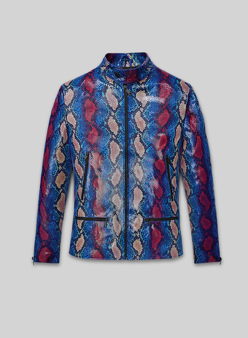 Elevate your style effortlessly with the Glinting Bold Blue Python Leather Jacket as you strut through the city streets. The snake-inspired design is guaranteed to make heads turn, whether you're taking a leisurely stroll in the park or owning the dancefloor.
