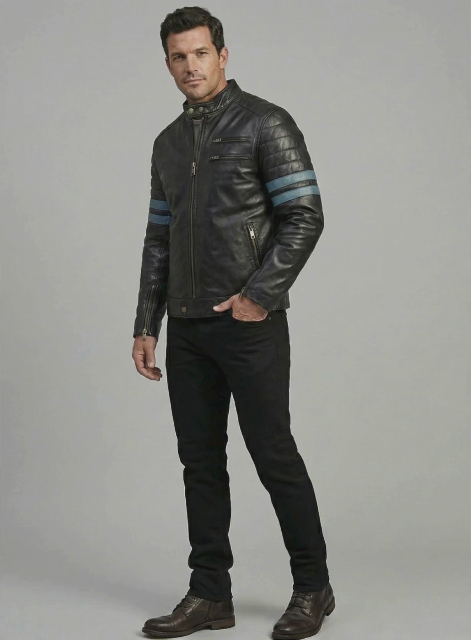 Make a great impression with our Super Stylish leather jackets, perfect with Khakis or Jeans.