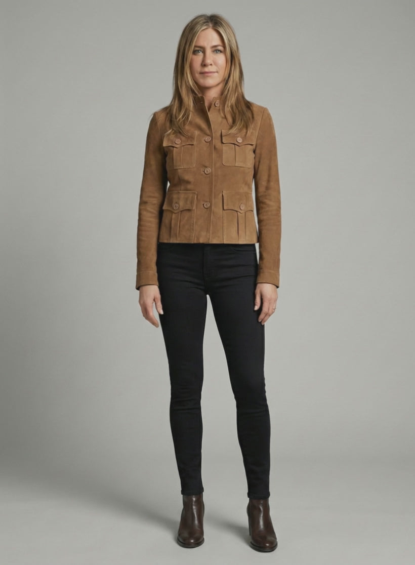 There are days when you don’t just want to feel confident — you want to own every sidewalk like it’s your runway. That’s where this leather jacket comes in. A slick tribute to the one Jennifer Aniston wore in Love Happens, it’s all about that laid-back glam with a punch of “don’t mess with me” energy.