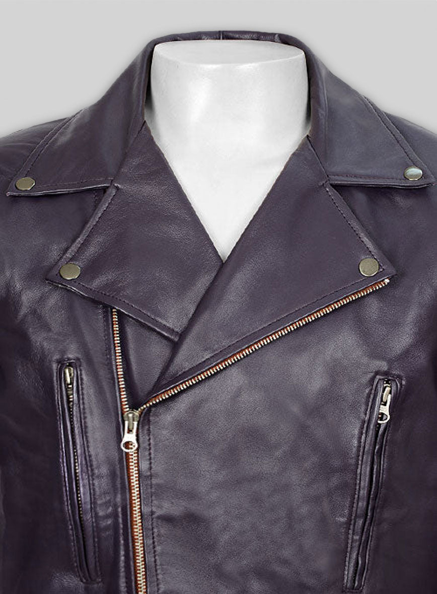 Inject some attitude into your ensemble with our Purple Leather Jacket. No wardrobe is complete without the perfect leather jacket,an iconic piece which is sure to stay in your clothing repertoire for years to come. Made Using Pure Napa Sheep Skin Soft Leather. Look Includes Purple Leather Color Antique Silver Zipper You can change the ...
