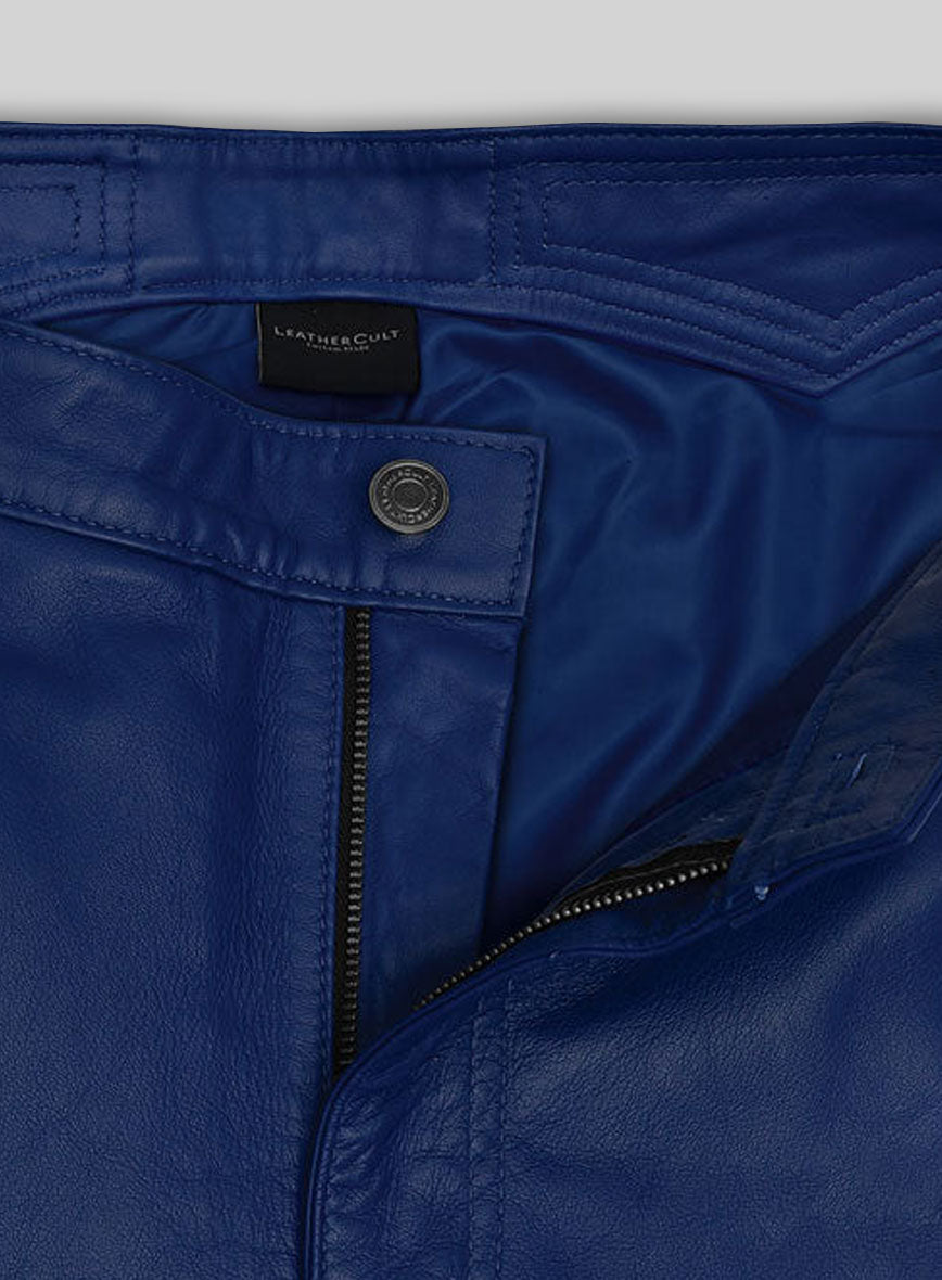 Prepare to achieve a casual yet stylish look with our one-of-a-kind leather pants.Crafted from soft and authentic PURE Napa leather, these electric zipper combination pants boast a unique blue and white dual-shaded design that ensures a distinctive appearance. Trust us, these leather pants are a must-have addition to any fashion-forward individual. Look Includes Rich Blue ...
