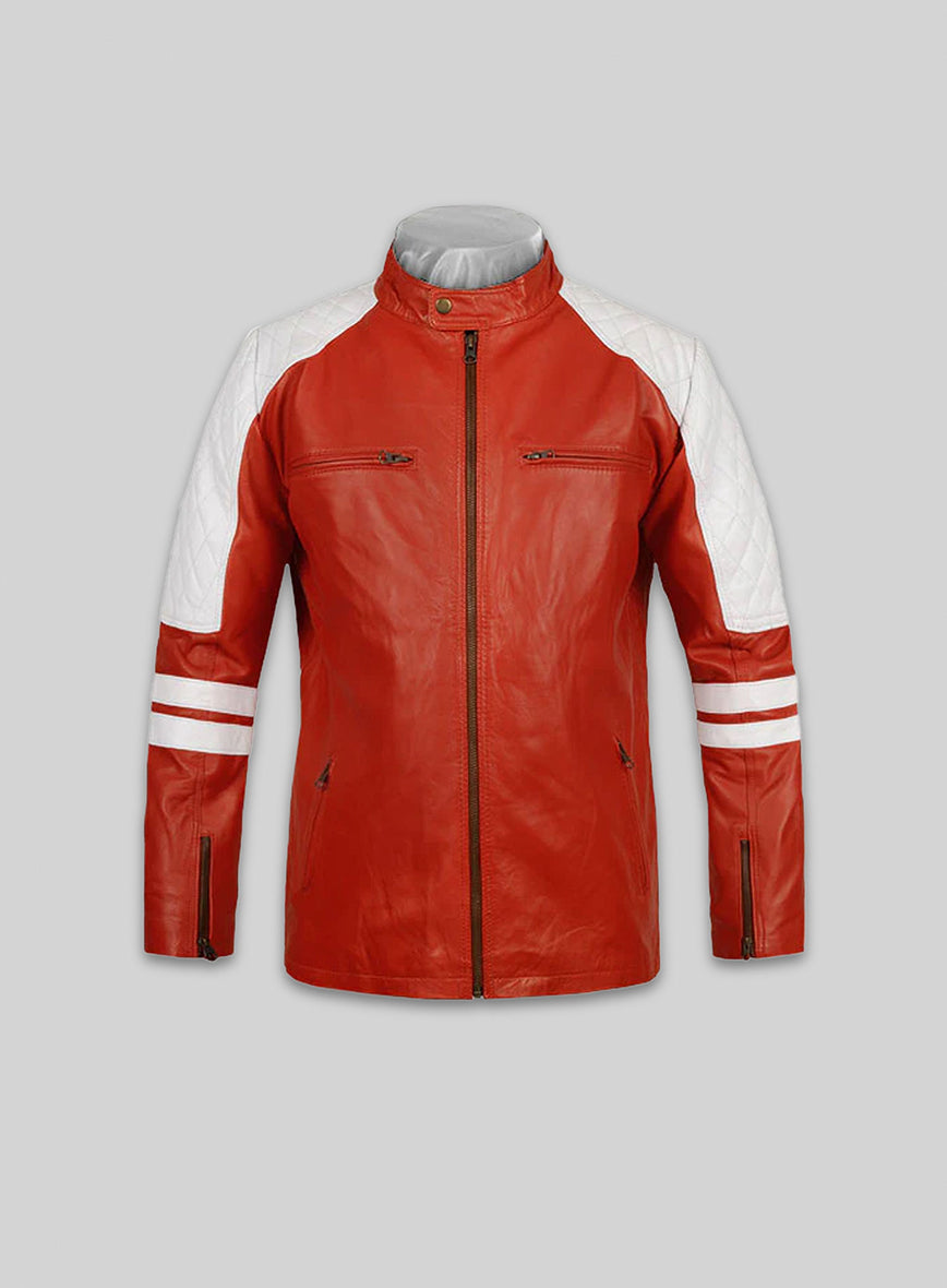 Give a new dimension to an iconic wardrobe staple with the Ricky Stripe Leather Jacket. Pair with a white crew-neck T-shirt, navy tailored trousers and white sneakers for a cool off-duty look. Made Using Pure Napa Sheep Skin Soft Leather. Look Includes Red Leather Color White Stripe Leather Color Antique Brass Zipper You can change ...