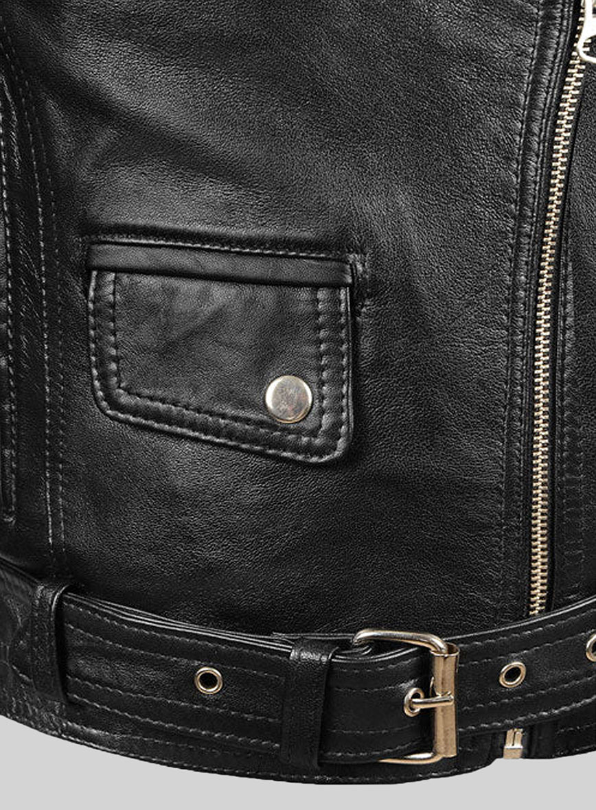 A replica of the stunning jacket worn by Emilia Clarke while playing her character as Sarah Connor in the movie 'Terminator Genisys' along with Arnold Schwarzenegger, which was released in the year 2015.