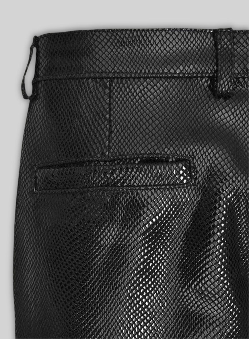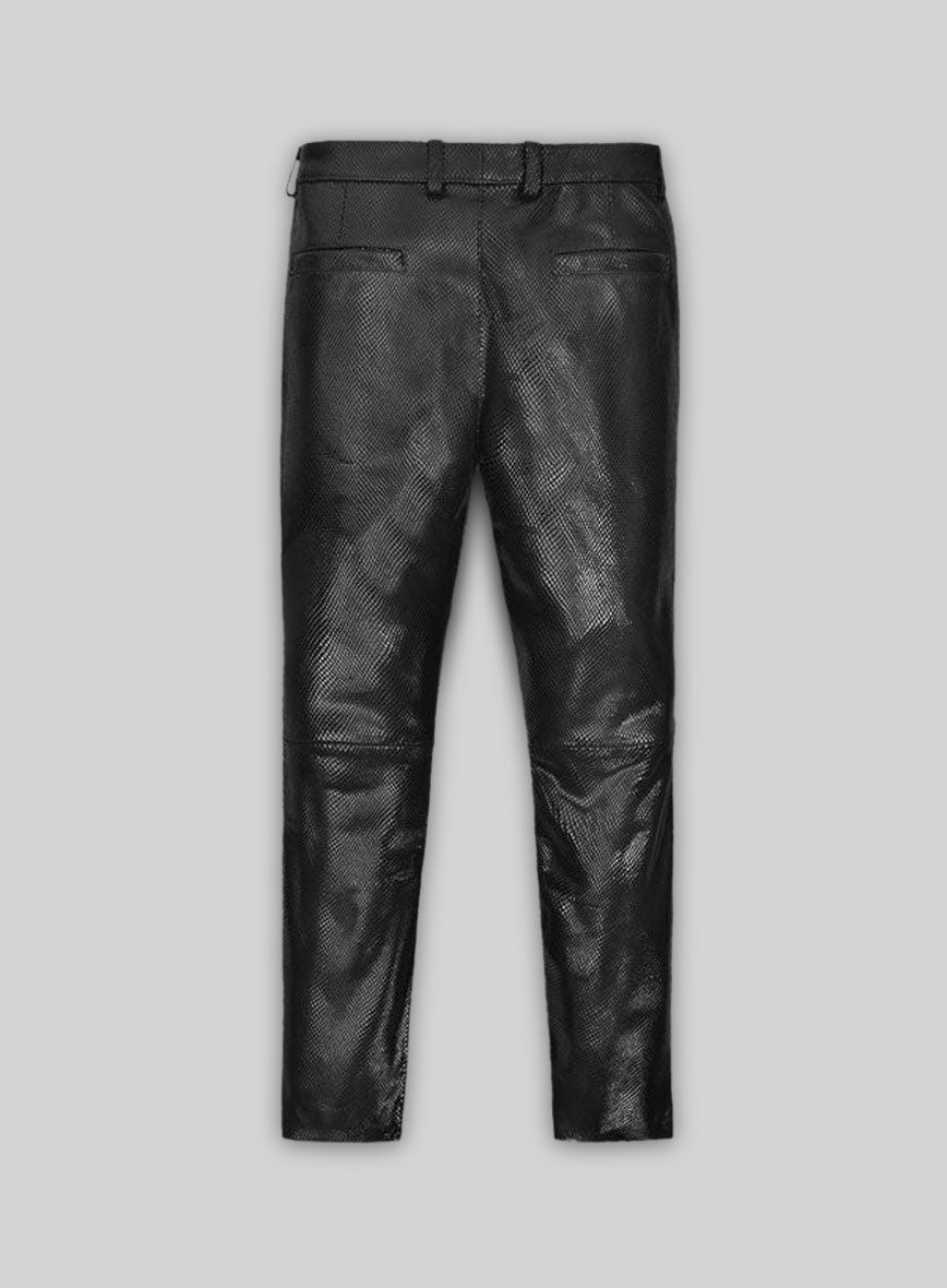 Look young and luxurious in these dapper Snake Emboss Black Leather Pants. Tailored with napa leather, its embossed black color is texturized as a snakeskin texture, giving you a shiny statement piece that will make heads turn.
