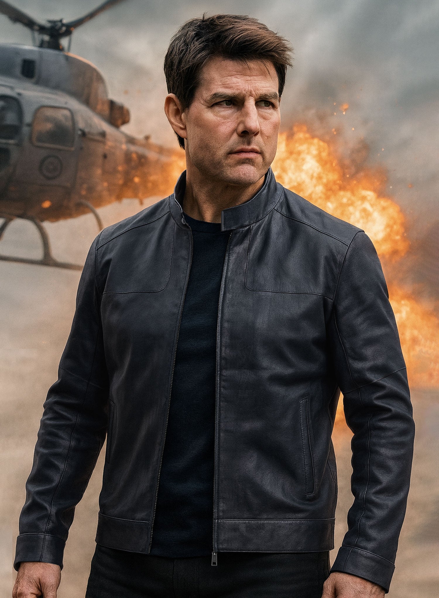 For those who are ready to make a serious investment and a strong on trend style statement, here is a replica leather jacket worn by the dynamic Hollywood actor Tom Cruise while playing the character of Ethan Hunt in the action movie 'Mission: Impossible - Fallout' that released in the year 2018.