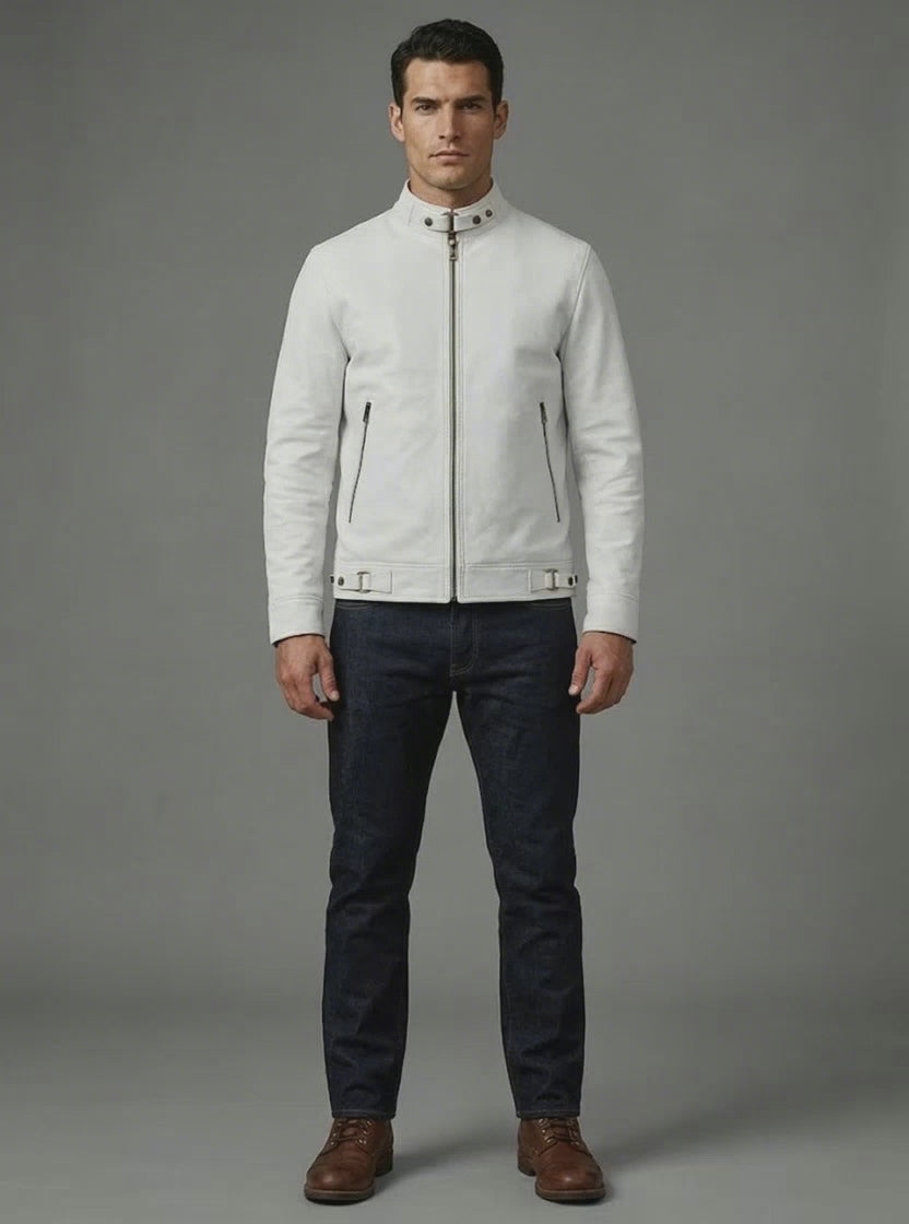 Refine your appearance and shine bright in our White Leather Jacket #905, oozing undeniable style that's as timeless as it gets!